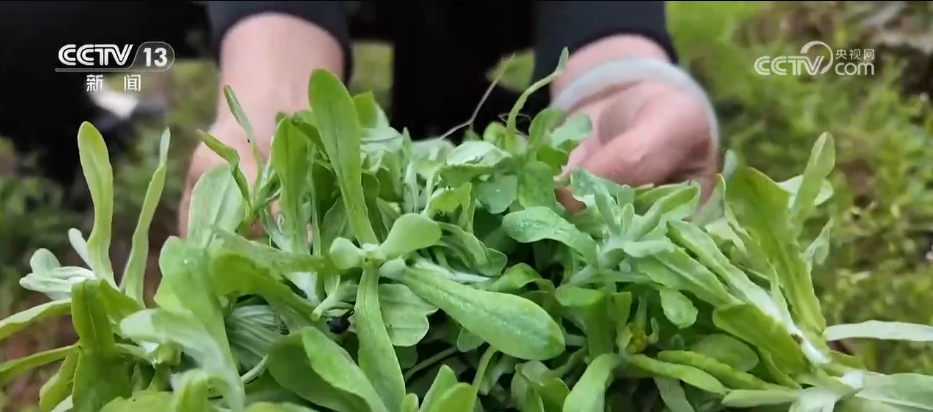 铜仁市江口县的村民饶念一大早就和亲戚们提着竹篮到地里采摘新鲜的清明菜。清明菜叶片呈灰绿色,表面覆着一层细密的白绒,摸上去软绵绵的。采回来后,要先剔除老叶,再洗净切碎,最后放入沸水中焯一下,捞出来备用。接着,把焯过水的清明菜和糯米粉下锅,慢慢熬成糊状;出锅后,再加面粉揉成鲜绿软糯的面团。面团揉好后就可以包馅了,馅料有肉末糟辣椒、腊肉豆腐等,咸香可口,各有风味;最后捏饼收口,搓圆成型,一个个圆润饱满的清明粑就做好了。