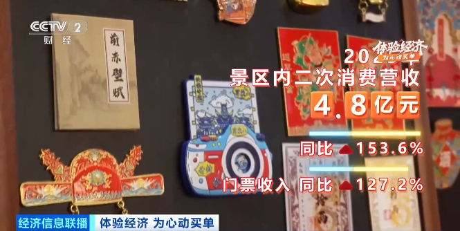 看不完的节目单,和景区的三日通票,成功将游客平均停留时间从3到4小时延长至8小时以上。从一日三餐到文创零售,景区内的二次消费,创造出4.8亿元营收,同比增长153.6%,超过了门票收入的增速。