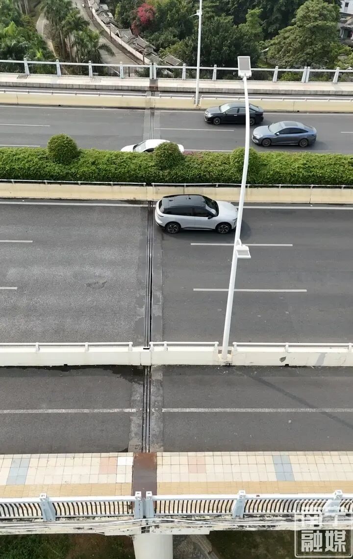 “葫芦鼎大桥南岸上游侧伸缩缝有金属撞击响声,造成该松动的原因为伸缩缝长期运行过程中受车辆荷载、冲击、梁体振动等影响,内部支撑横梁、滑板、定位销松动,伸缩时产生错位撞击而发出撞击声。我工作人员在日常巡查时已发现,正在持续监测病害发展情况。”南宁市市政工程管理处桥梁管理科工程师马文俊告诉记者,桥梁伸缩缝为梁体自由伸缩的连接构件,非主要受力构件,该响动对桥梁正常运行暂不构成影响。在2025年开展的葫芦鼎大桥桥梁定期检测中,主桥检测评级为合格级,桥梁承载能力满足设计荷载要求,桥梁现处于安全、稳定的运行状态。