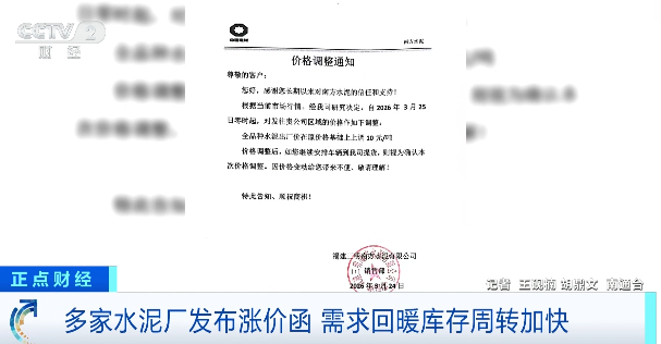 多家水泥厂发布涨价函 需求回暖库存周转加快