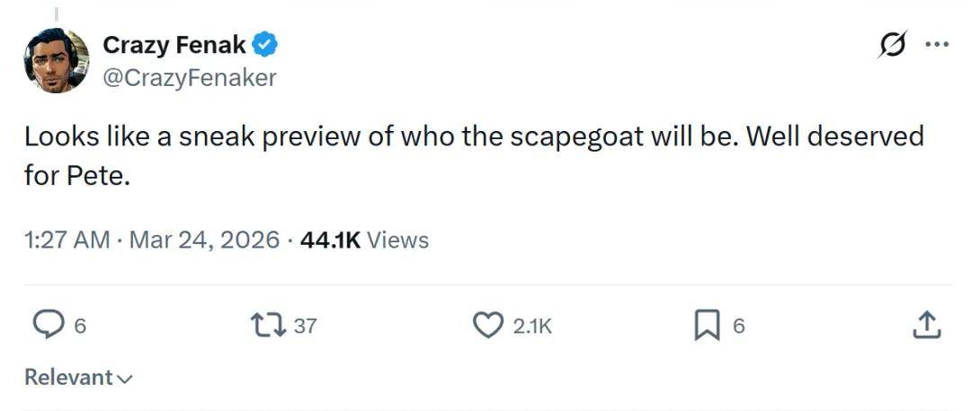 没过一天,特朗普在白宫再次点名赫格塞思和凯恩,称他们是唯二对美以联合对抗德黑兰的战争结束感到失望的人。他说:我认为这个问题很快就会得到解决,他们会说‘哦,太可惜了’,皮特不想让这件事解决。特朗普继续补充道:他们根本不关心和解,他们只想打赢这场战争。特朗普突然间的甩锅在美国国内引发了广泛讨论。美媒《今日美国》的评论指出:特朗普每次一旦做出错误的决定,总会有某个替罪羊出来背锅。评论还说,这是特朗普的惯用伎俩——每当他自己陷入尴尬时,总是会找个替罪羊来承担责任。随着伊朗局势的不断恶化,我们或许会听到特朗普如是说:你知道,皮特当时说‘那就这样吧’,我其实并不太确定,我只是想要和平。你知道,我已经结束了所有的战争。《新共和》周刊则称,特朗普正试图通过将国防部长置于不利境地,来掩盖战争并未如预期那样顺利结束的事实。《滚石》杂志也指出,随着局势愈发复杂且美国国内民众的反对声音渐大,特朗普开始四处推卸责任。